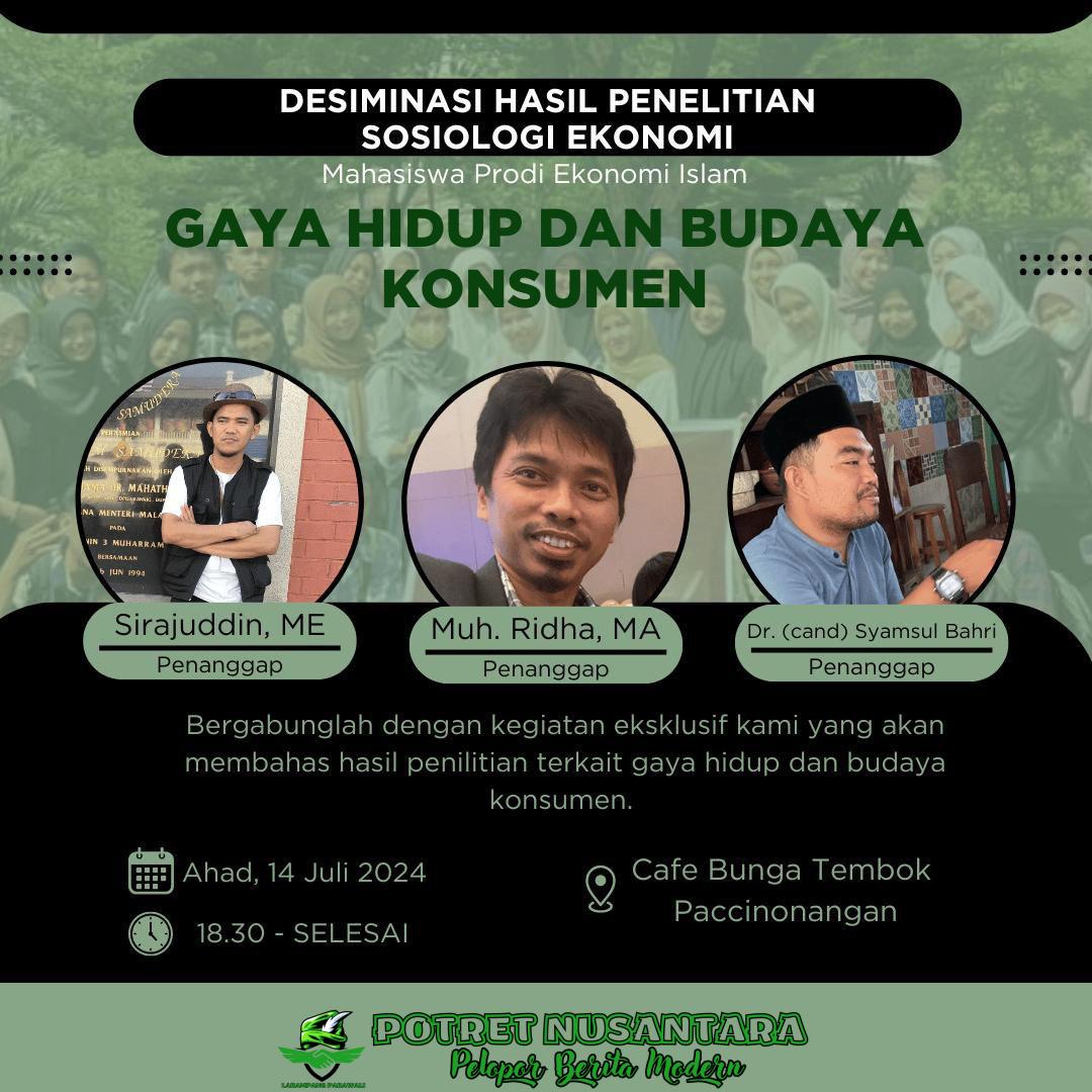 Diskusi ini merupakan bagian dari tugas akhir semester (UAS) mata kuliah Sosiologi Ekonomi Program Studi Ekonomi Islam Semester IV Tahun 2024. Kegiatan ini diinisiasi oleh Nur Muh Afdal, Ahmad Alfian Arifin, Mardiana, Rina dan Maulina Syarif dengan bimbingan dosen Sirajuddin, M.E dari Program Studi Ekonomi Islam Fakultas Ekonomi dan Bisnia Islam Universitas Islam Negeri Alauddin Makassar 2024.