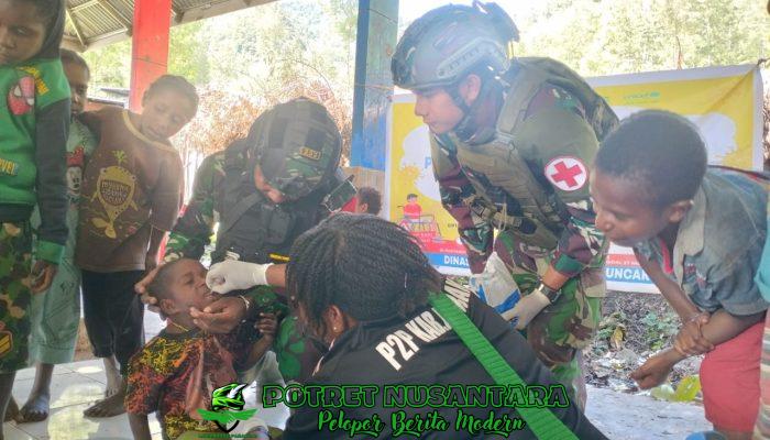 Papua -Potretnusantara.co.id- Penyakit polio masih menjadi ancaman serius bagi kesehatan masyarakat, terutama di daerah-daerah terpencil dan pedalaman, untuk menanggulangi penyebaran virus ini, Pos Beoga Satgas Yonif 323 Buaya Putih bekerjasama dengan Puskesmas Beoga menyelenggarakan program imunisasi polio gratis di Distrik Beoga, Kabupaten Puncak, Papua Tengah, Selasa (16/07/24).