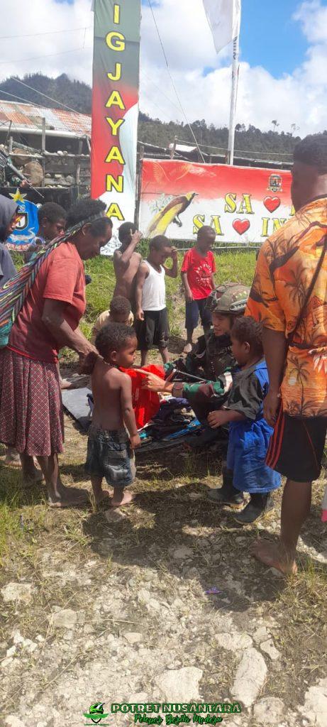 Papua – Potretnusantara.co.id – Satgas Pamtas Mobile Yonif 323 Buaya Putih punya ribuan cara dan segudang ide untuk membuat warga Kabupaten Puncak tersenyum bahagia, kali ini prajurit Buaya Putih membagikan pakaian layak pakai kepada masyarakat di halaman Pos Sinak, Kabupaten Puncak, Papua Tengah, Jumat (26/07/2024).