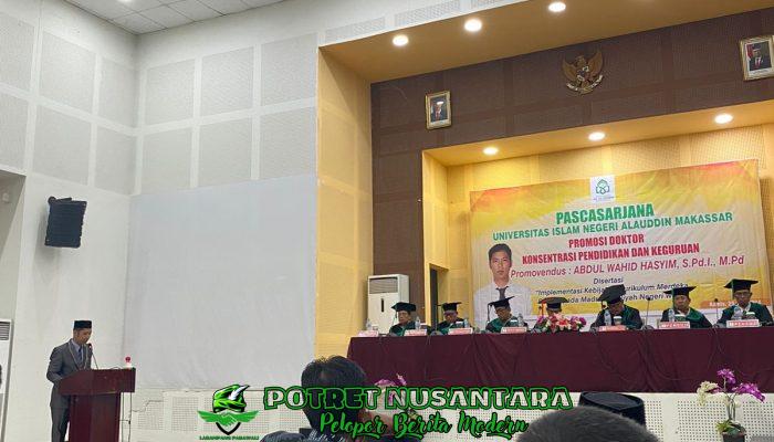 Makassar – Potretnusantara.co.id – UIN Alauddin Makassar kembali mencatat prestasi membanggakan dengan kelulusan doktor muda Abdul Wahid Hasyim, seorang ASN di Kementerian Agama Kabupaten Wajo. Abdul Wahid berhasil mempertahankan disertasi berjudul “Implementasi Kebijakan Kurikulum Merdeka Belajar pada Madrasah Aliyah Negeri Wajo” dalam ujian promosi doktor yang dilaksanakan di Gedung PPG Pao-Pao, Kabupaten Gowa pada Kamis, 25 Juli 2024.