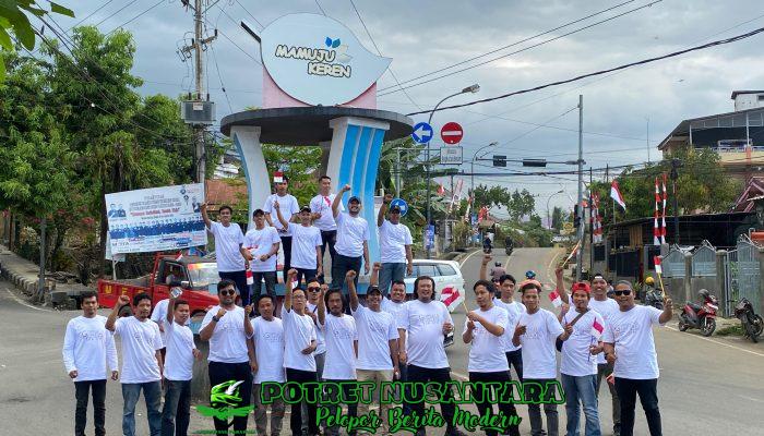 Mamuju – Potretnusantara.co.id – Puluhan pemuda yang tergabung dalam Gerakan Muda (Gema) SDK – JSM terlihat membagikan bendera berukuran kecil dan stiker SDK – JSM kepada sejumlah masyarakat yang melintas di Tugu Tani, Simpang Lima Jalan Husni Thamrin dan Jalan Ahmad Yani Mamuju, Jumat 16 Agustus 2024.