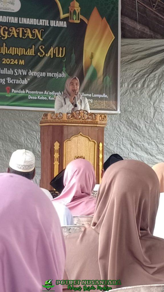 Soppeng,-Potretnisantara.co.id – Anggota DPRD Soppeng dari Fraksi Partai Gerindra, Andi Nelli, menghadiri Peringatan Maulid Nabi Muhammad SAW 1446 H / 2024 M di Pondok Pesantren As’adiyah Linahdlatil Ulama Lompulle Desa Kebo, Kecamatan Lilirilau, Kabupaten Soppeng, hari ini 18 September 2024.