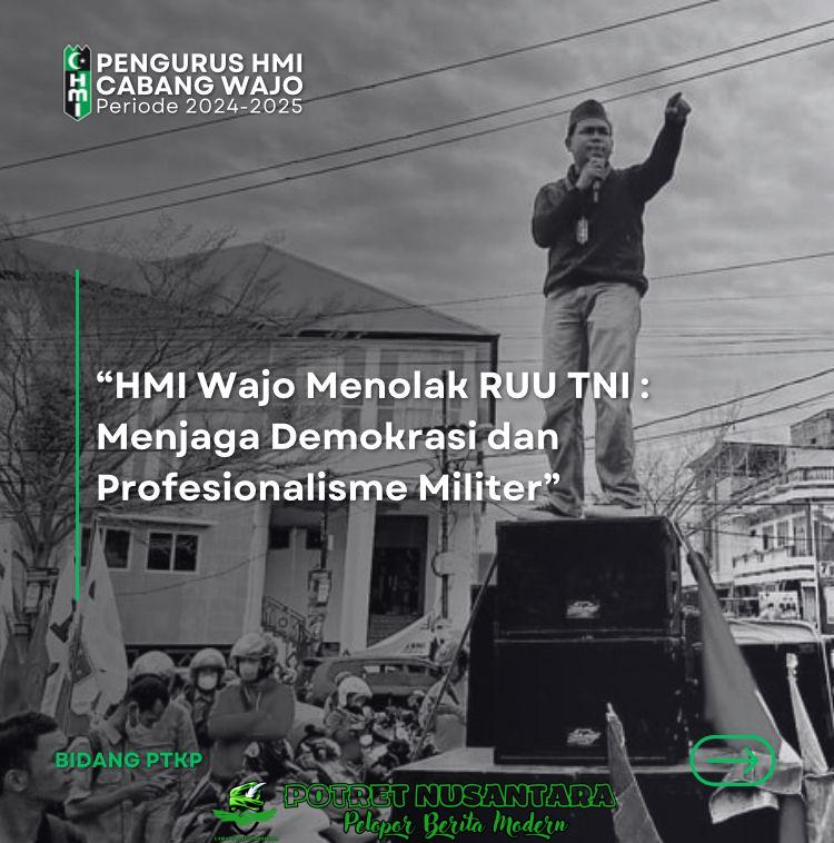 Wajo,- Potretnusantara.co.id– Himpunan Mahasiswa Islam (HMI) Cabang Wajo dengan tegas menolak Rancangan Undang-Undang (RUU) TNI yang saat ini sedang dibahas oleh pemerintah dan DPR. Penolakan ini didasarkan pada berbagai pertimbangan yang mengancam prinsip demokrasi, supremasi sipil, dan profesionalisme militer dalam negara hukum,19/03/2025.