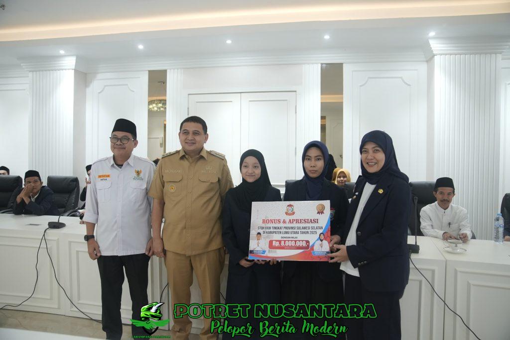 Makassar, – Potretnusantara.co.id – Wali Kota Makassar Munafri Arifuddin bersama Wakil Wali Kota Makassar Aliyah Mustika Ilham memberi apresiasi dan bonus kepada peserta Seleksi Tilawatil Qur’an dan Hadits (STQH) ke-23 tahun 2025.