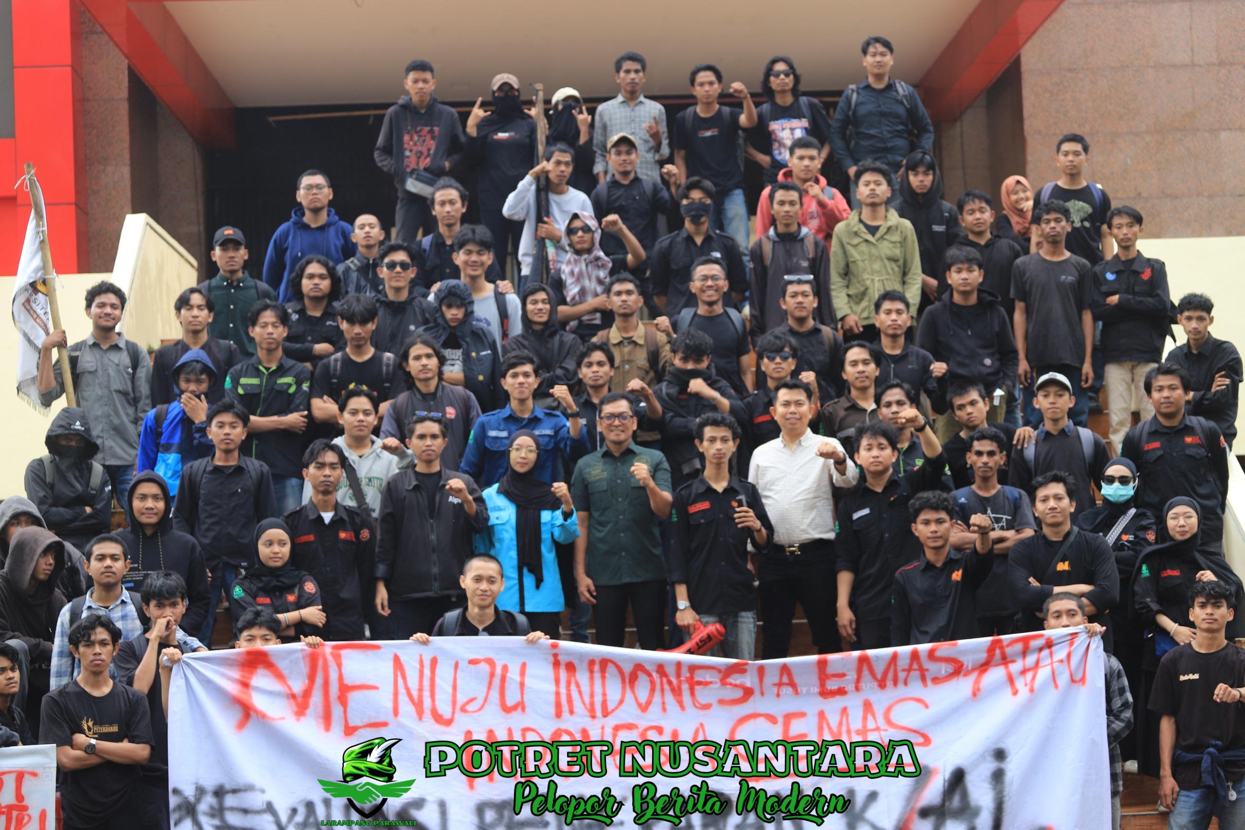 Selanjutnya, massa bergerak menuju Kantor DPRD Provinsi Sulawesi Selatan untuk menyampaikan pernyataan sikap resmi yang mengangkat tema besar “Indonesia Emas atau Indonesia Cemas”. Dalam pernyataan itu, mereka menyampaikan empat tuntutan utama: