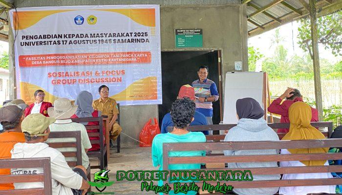 Tenggarong Seberang, Potretnusantara – Lembaga Penelitian dan Pengabdian kepada Masyarakat (LPPM) Universitas 17 Agustus 1945 (UNTAG) Samarinda menyelenggarakan kegiatan sosialisasi dan Focus Group Discussion (FGD) bersama Kelompok Tani Panca Karya di Desa Bangun Rejo, Kecamatan Tenggarong Seberang, Kabupaten Kutai Kartanegara, Selasa (15/7/2025).