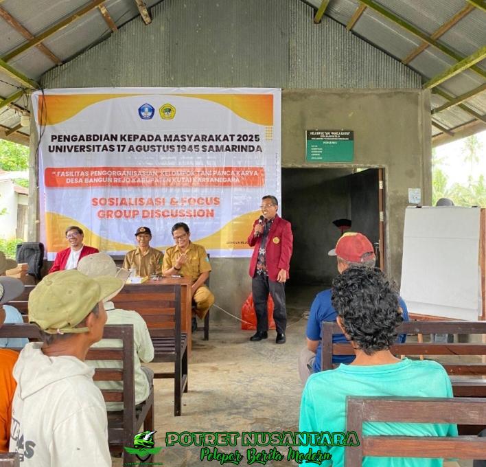 Tenggarong Seberang, Potretnusantara – Lembaga Penelitian dan Pengabdian kepada Masyarakat (LPPM) Universitas 17 Agustus 1945 (UNTAG) Samarinda menyelenggarakan kegiatan sosialisasi dan Focus Group Discussion (FGD) bersama Kelompok Tani Panca Karya di Desa Bangun Rejo, Kecamatan Tenggarong Seberang, Kabupaten Kutai Kartanegara, Selasa (15/7/2025).