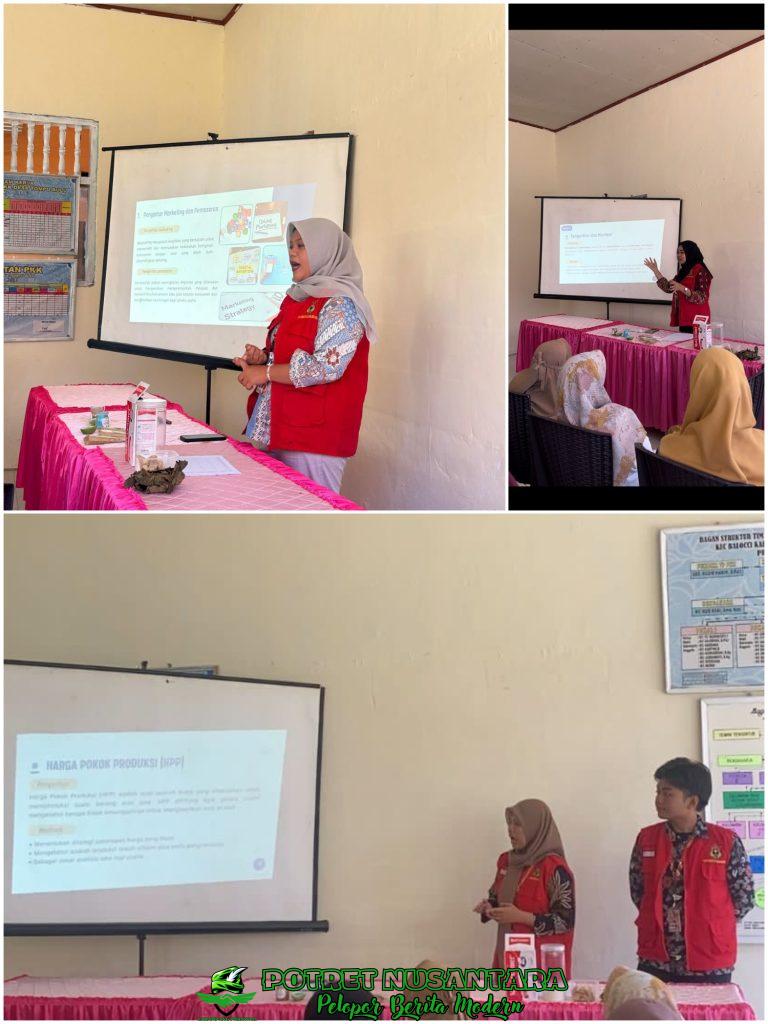 Kegiatan ini merupakan bagian dari upaya pengabdian kepada masyarakat. Adapun pelatihan ini mencakup berbagai materi penting, seperti perhitungan Harga Pokok Produksi (HPP), Break Even Point (BEP), strategi pemasaran, dan pembukuan keuangan sederhana. Salah satu fokus utama adalah dorongan kepada peserta untuk mulai menjual produk secara daring serta memanfaatkan video promosi secara efektif. Tim KKN bahkan menyediakan bantuan dalam pembuatan konten promosi tersebut.