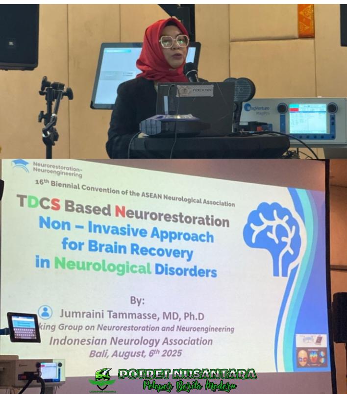 Ketua Departemen Neurologi Fakultas Kedokteran Universitas Hasanuddin ini, yang juga menjabat sebagai Ketua Neurorestorasi-Neuroengineering PERDOSNI, menyampaikan makalah berjudul “TDCS Based Neurorestoration: Non-Invasive Approach for Brain Recovery in Neurological Disorders”.