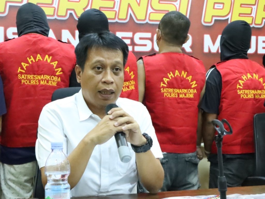 Kasat Res Narkoba Polres Majene, IPTU Japaruddin, didampingi KBO Sat Res Narkoba IPTU Yulius Rappan, menjelaskan bahwa empat tersangka yang diamankan masing-masing berinisial AR (34) warga Polewali Mandar, AL (31) dan RS (25) warga Majene, serta SD (20) warga Majene.