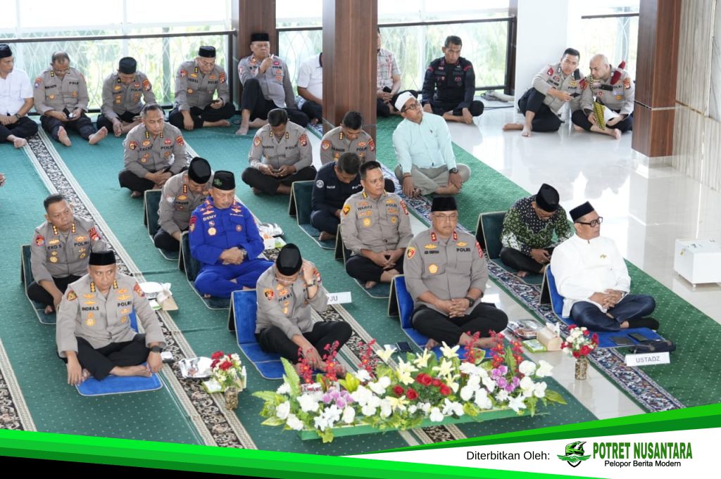 Kegiatan berlangsung khidmat dengan dihadiri Kapolda Sulbar Irjen Pol Adi Deriyan Jayamarta, Kakanwil, pejabat utama Mapolda, personel, serta anggota Bhayangkari. Suasana semakin syahdu dengan penampilan Marawis dan pembacaan sari tilawah dari personel Polda Sulbar.