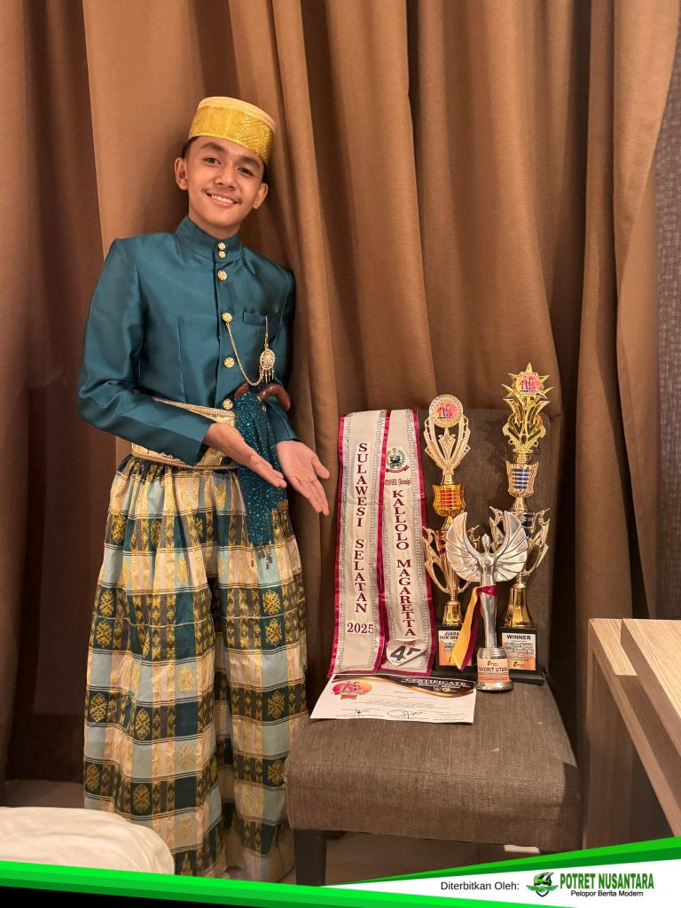 Makassar, 15 September 2025 – Prestasi membanggakan ditorehkan oleh Jibriel Sam, putra asal Kabupaten Soppeng, yang berhasil menyabet ‘Winner’ Juara 1 dalam ajang Anadara Malebbi & Kallolo Magaretta Sulawesi Selatan 2025 (AMKM Sulsel 2025). Grand final ajang bergengsi ini berlangsung meriah di Kota Makassar pada Minggu malam, 14 September 2025.