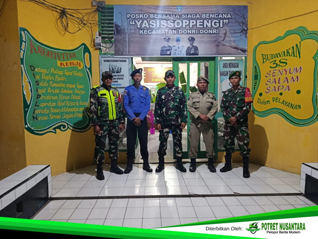 Soppeng, Potretnusantara.co.id – Personel Posramil Donri-Donri Koramil 1423-01/Lalabata bersama Satpol PP Kabupaten Soppeng serta Damkar Kabupaten Soppeng melaksanakan patroli bersama di wilayah Kecamatan Donri-Donri pada Sabtu malam, (20/9/2025).