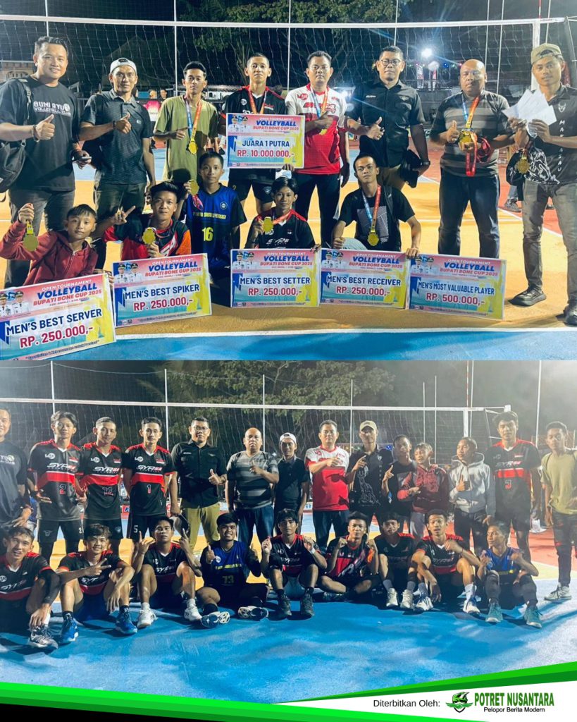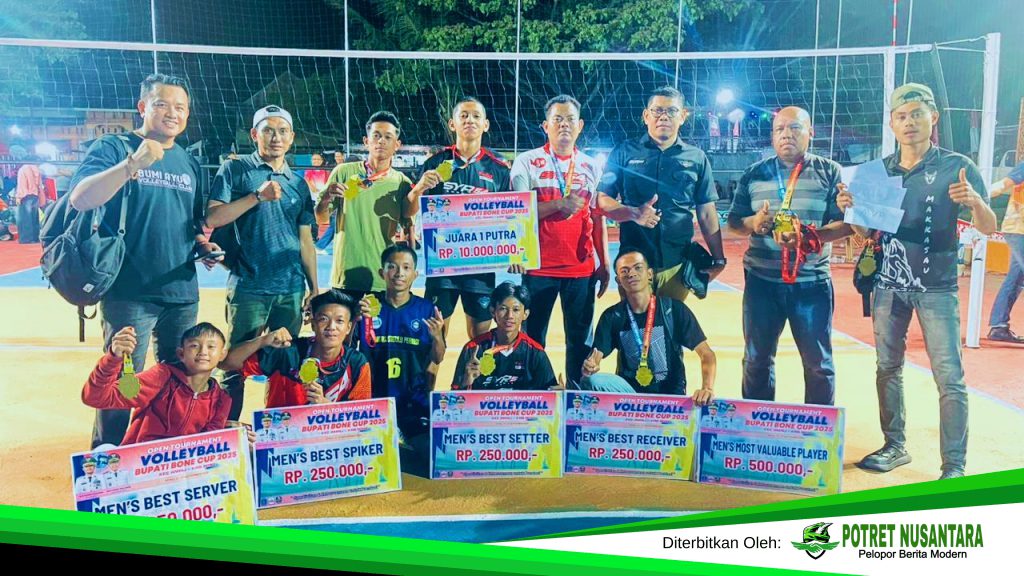 Bone, Potretnusntara.co.id – Tim SYR 54 Gemparkan Turnamen Bola Voli Bupati Bone Cup 2025 di malam final, yang digelar Sabtu (27/9) di lapangan Teretta kecamatan Amali Kabupaten Bone menjadi panggung kejayaan bagi tim bola voli putra SYR 54 asal Kabupaten Soppeng.
