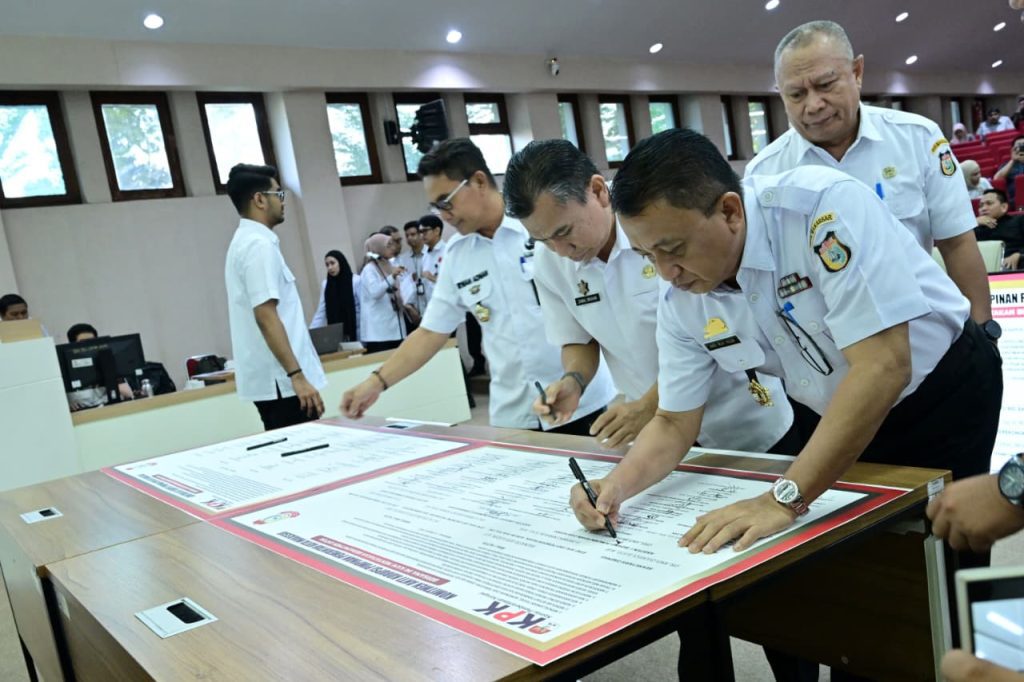 Pakta integritas tersebut memuat sembilan poin komitmen, di antaranya menolak gratifikasi, mendukung penegakan hukum, menyusun APBD berdasarkan aspirasi masyarakat, serta menolak intervensi dalam pengadaan barang dan jasa.