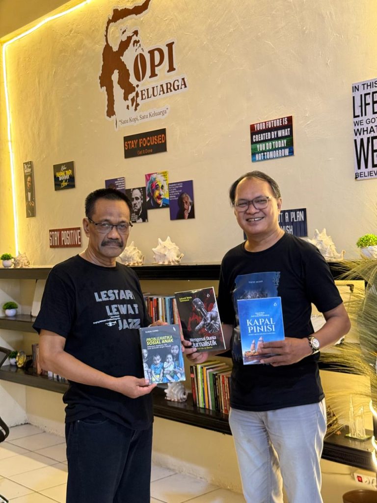 Prof Sukardi Weda, penulis buku autobiografi Profesor Pembelajar, menyampaikan bila Kopi Keluarga milik anaknya ini, juga jadi tempatnya menulis artikel. Siang itu, ia menerima Rusdin Tompo, penulis dan pegiat literasi, di Kopi Keluarga.