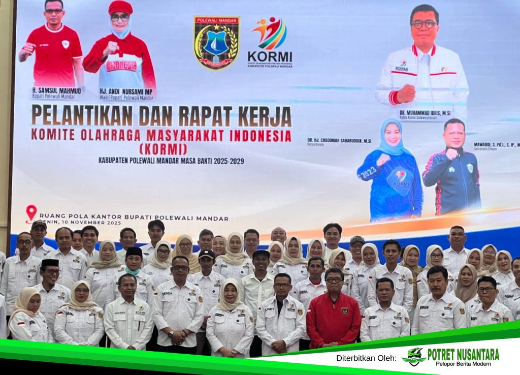 Polewali Mandar, Potretnusantara.co.id – Pengurus Komite Olahraga Masyarakat Indonesia (KORMI) Kabupaten Polewali Mandar periode 2025–2029 resmi dilantik dan langsung menggelar rapat kerja perdana di Ruang Pola Kantor Bupati Polewali Mandar, Senin (10/11/2025).