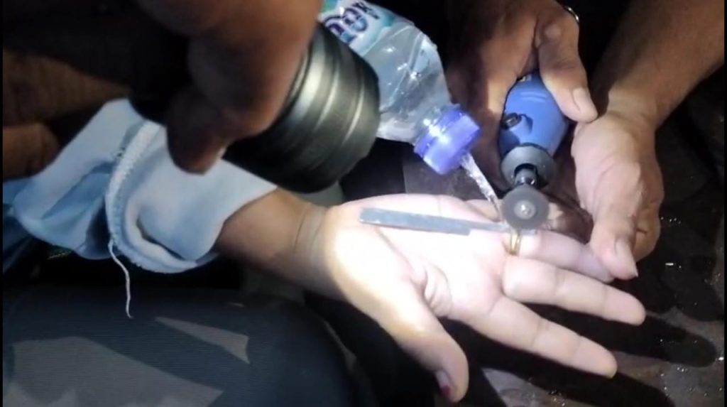 Beberapa jam sebelumnya, pukul 17.20 WITA, Regu B juga membantu seorang warga perempuan berinisial A (23) dari Kelurahan Darma yang meminta pertolongan melepas cincin yang membuat jarinya membengkak. Petugas menggunakan gerinda mini untuk memotong kedua sisi cincin secara hati-hati.