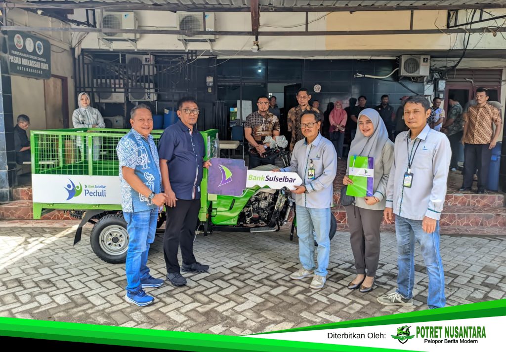 Makassar, Potretnusantara.co.id – Upaya peningkatan pelayanan di lingkungan pasar kembali diperkuat melalui kolaborasi strategis antara Perumda Pasar Makassar dan Bank Sulselbar. Melalui program Corporate Social Responsibility (CSR), Bank Sulselbar resmi menyerahkan bantuan berupa 5 unit motor roda tiga Viar dan 121 rompi yang diperuntukkan bagi petugas kebersihan, keamanan, dan kolektor di sejumlah pasar Kota Makassar.