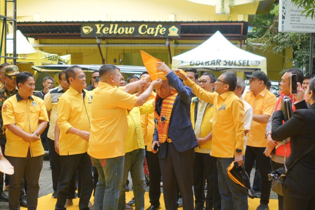 Munafri yang akrab disapa Appi tampak mengenakan atribut kuning kebesaran Partai Golkar. Ia menunggu di depan kantor DPD I Golkar Sulsel bersama jajaran pengurus DPD I serta sejumlah ketua DPD II kabupaten/kota se-Sulawesi Selatan.