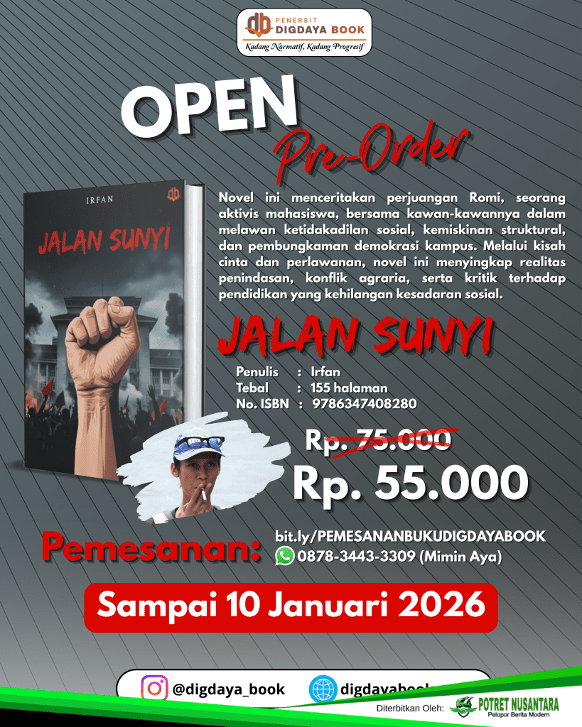 Opini Publik, Potretnusantara.co.id -JALAN SUNYI adalah sebuah novel yang menelusuri jejak perlawanan, cinta, dan kesadaran sosial di tengah dunia yang kian bising oleh kekuasaan namun sunyi dari keadilan. Novel ini mengisahkan perjalanan Romi, seorang mahasiswa aktivis, bersama kawan-kawannya yang memilih jalan terjal dalam menghadapi ketidakadilan sosial, kemiskinan struktural, serta pembungkaman demokrasi di ruang kampus dan masyarakat luas.