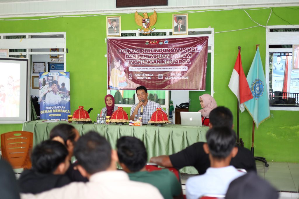 Bantaeng, Potretnusantara.co.id – Mahasiswa Kuliah Kerja Nyata Tematik (KKN-T) Inovasi Daerah Gelombang 115 Universitas Hasanuddin (Unhas) melaksanakan kegiatan sosialisasi bertema “ Edukasi Perlindungan Anak dan Perempuan dalam Lingkungan Keluarga” di Desa Bonto Jai, Kecamatan Bissappu, Kabupaten Bantaeng, Selasa (13/1/2026).