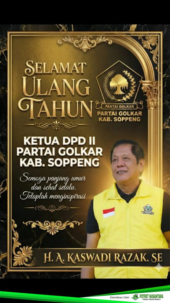 Soppeng, Potretnusantara.co.id – H. Andi Kaswadi Razak, SE, mantan Bupati Soppeng dua periode sekaligus Ketua DPD II Partai Golkar Kabupaten Soppeng, genap berusia 59 tahun pada hari ini Ahad, 1 Februari 2026.