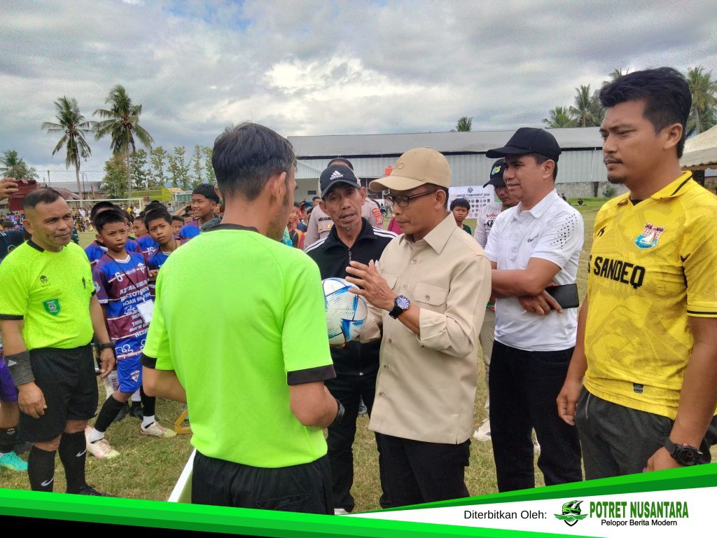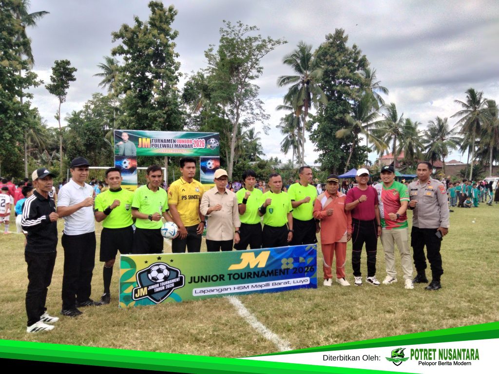 Polewali Mandar, Potretnusantara.co.id – Bupati Polewali Mandar, H. Samsul Mahmud, menghadiri sekaligus membuka Turnamen Sepak Bola JM Junior HSM Tahun 2026 yang digelar di Desa Mapilli Barat, Kecamatan Luyo, Kabupaten Polewali Mandar, Jumat (6/2/2026).