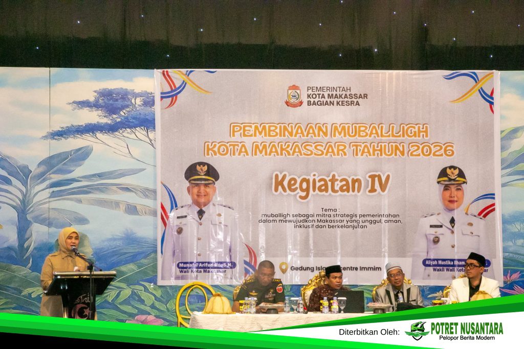 Makassar, Potretnusantara.co.id – Wakil Wali Kota Makassar, Aliyah Mustika Ilham, secara resmi menutup rangkaian Pembinaan Muballigh Kota Makassar Tahun 2026 Kegiatan IV yang mengusung tema “Muballigh sebagai Mitra Strategis Pemerintah dalam Mewujudkan Makassar yang Unggul, Inklusif, Aman, dan Berkelanjutan”, di Gedung Islamic Centre IMMIM, Jalan Jenderal Sudirman No. 33 Makassar, Selasa (10/2/2026).
