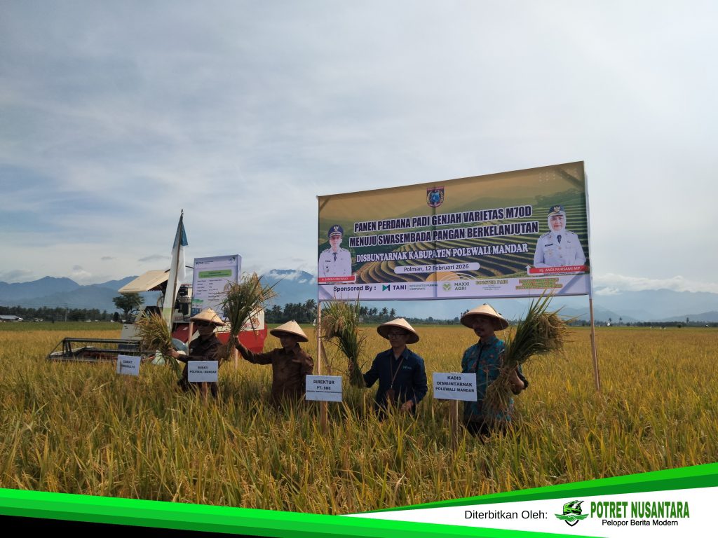 Polewali Mandar, Potretnusantara.co.id – Bupati Polewali Mandar, Samsul Mahmud, menghadiri panen raya perdana padi varietas baru di Desa Tumpuling, Kecamatan Wonomulyo, Kabupaten Polewali Mandar, Kamis (12/2/2026). Panen perdana tersebut mencatat hasil yang menggembirakan, dengan produktivitas mencapai lebih dari 8 ton per hektare.
