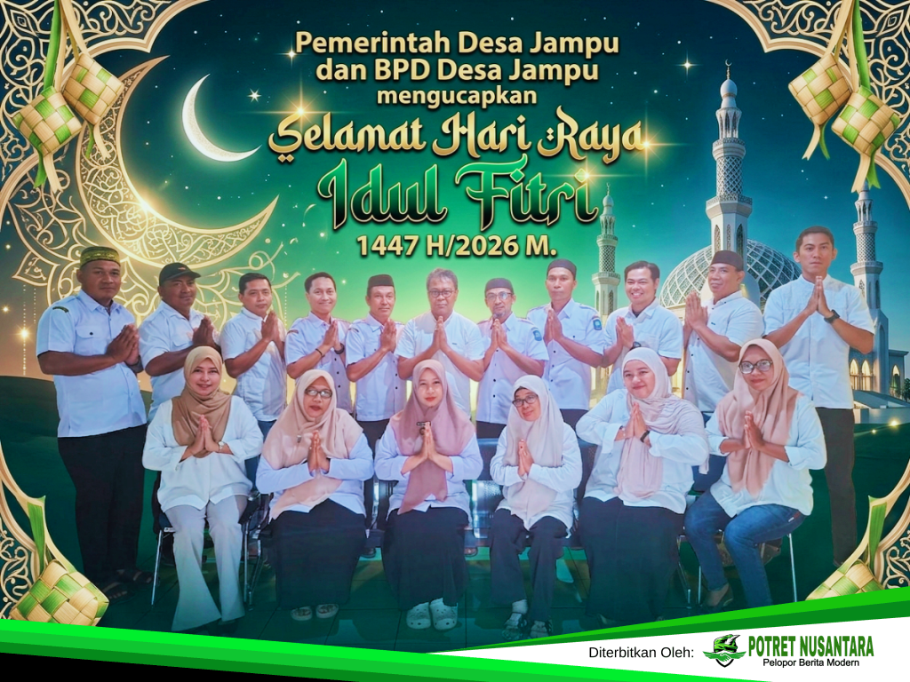 Soppeng,Potretnusanta.co.id- Seluruh staf Pemerintah Desa Jampu bersama Badan Permusyawaratan Desa (BPD) Desa Jampu kecamatan Liliriaja kabupaten Soppeng menyampaikan ucapan selamat menyambut Idul Fitri 1447 Hijriah/2026 Masehi kepada seluruh masyarakat. Momentum hari kemenangan ini diharapkan menjadi ajang untuk mempererat tali silaturahmi, saling memaafkan, serta memperkuat persatuan di tengah kehidupan bermasyarakat.