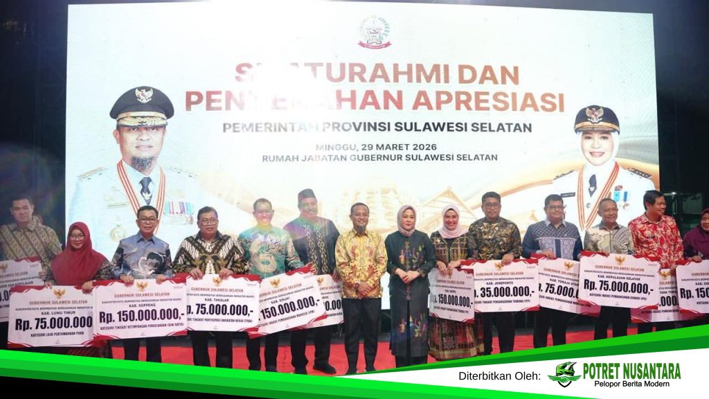 Soppeng, Potretnusantara.co.id – Bupati Soppeng, H. Suwardi Haseng, SE, bersama Wakil Bupati Ir. Selle KS Dalle, menghadiri acara silaturahmi dan penyerahan apresiasi yang digelar oleh Pemerintah Provinsi Sulawesi Selatan, bertempat di Rumah Jabatan Gubernur di Kota Makassar, Ahad malam (29/3/2026).