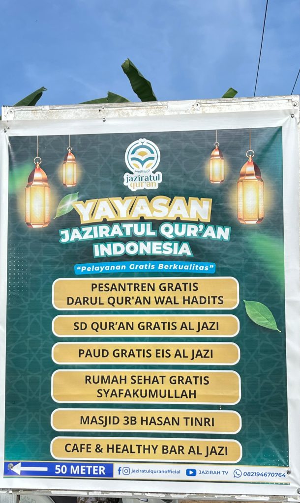 Pesantren yang diberi nama Ponpes Tahfidzul Qur’an Jaziratul Qur’an itu mengusung konsep pendidikan berbasis Alqur’an, pembinaan akhlak, serta penguatan karakter.