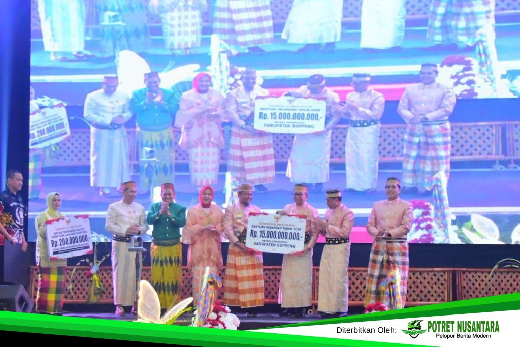 Pada kesempatan tersebut, Pemerintah Provinsi Sulawesi Selatan menyerahkan sejumlah bantuan kepada Pemkab Soppeng, antara lain bantuan keuangan Rp15 miliar untuk 2026, bantuan listrik, peningkatan rumah tidak layak huni, bufferstock logistik bencana, serta bantuan alat pertanian.