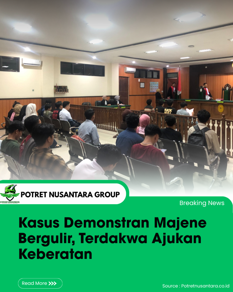 Majene, Potretnusantara.co.id – Sidang perdana kasus dugaan kriminalisasi terhadap demonstran di Kabupaten Majene, Sulawesi Barat, digelar pada Kamis (9/4/2026). Agenda sidang berfokus pada pembacaan dakwaan oleh Jaksa Penuntut Umum (JPU) terhadap empat terdakwa, yakni Ucok dan rekan-rekannya.