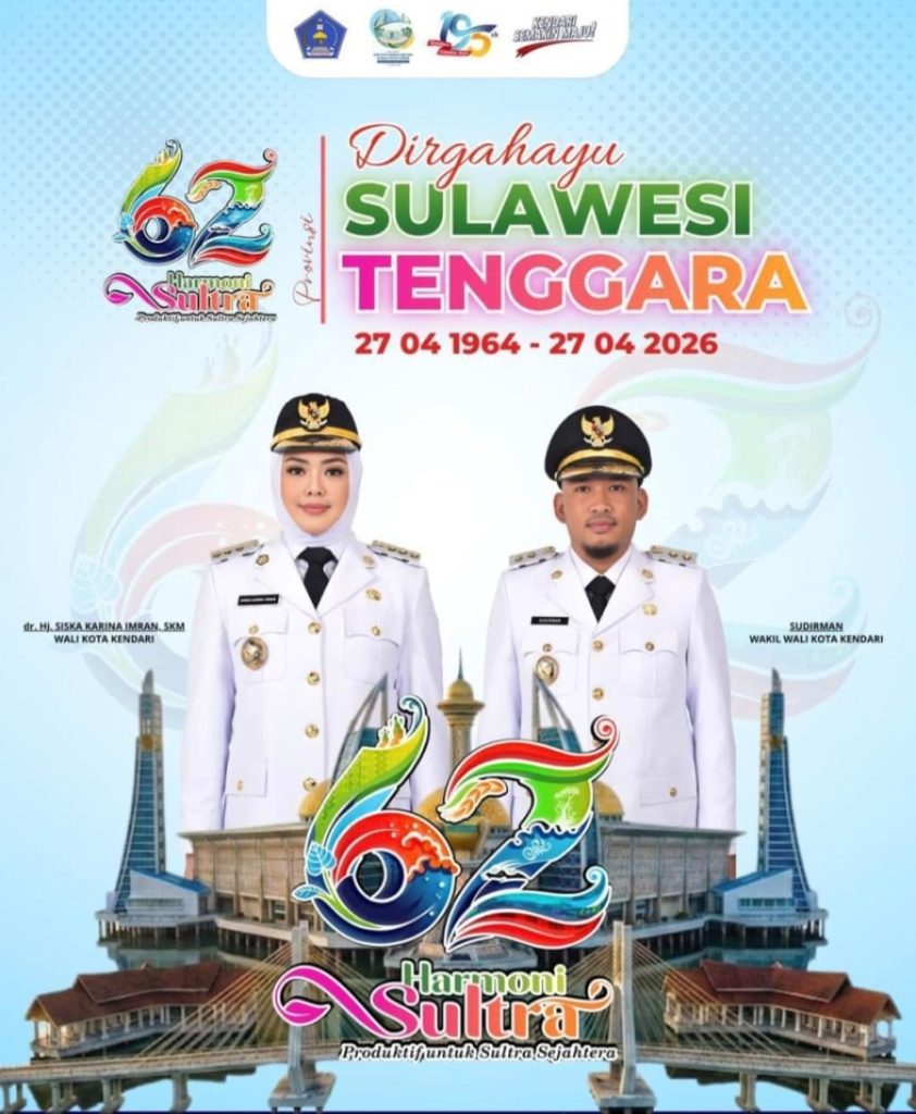 Kendari, Potretnusantara.co.id – Pemerintah Kota Kendari turut menyemarakkan peringatan Hari Ulang Tahun (HUT) ke-62 Provinsi Sulawesi Tenggara (Sultra). Melalui unggahan resmi, Wali Kota Kendari, dr. Hj. Siska Karina Imran, SKM, bersama Wakil Wali Kota Sudirman, menyampaikan ucapan selamat sekaligus harapan besar bagi kemajuan Bumi Praja Suma.