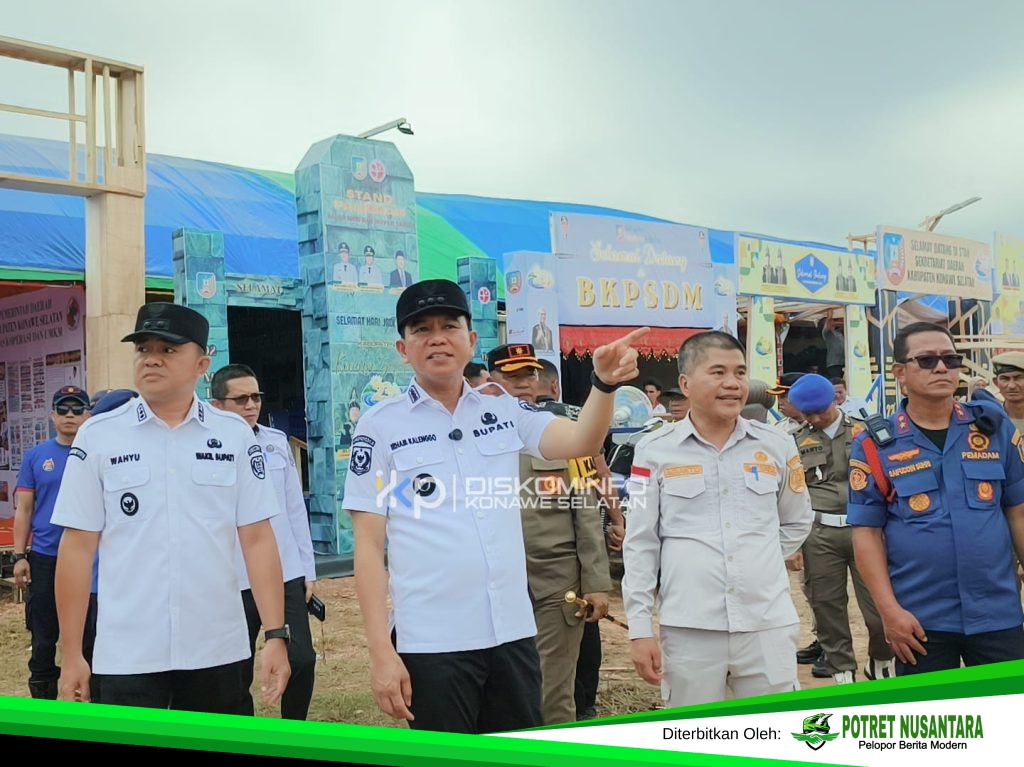Pada Rabu (29/04/2026), keduanya turun langsung ke lapangan Islamic Center Andoolo untuk meninjau kesiapan venue utama. Didampingi Ketua Panitia HUT Konsel, Agianto, rombongan mengecek detail kesiapan panggung utama, deretan stan Organisasi Perangkat Daerah (OPD), hingga stan perwakilan kecamatan dan instansi vertikal lainnya.